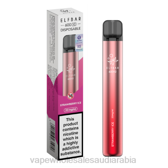 السيجارة الالكترونية بدون نيكوتين | 66TX294 جليد الفراولة ELFBAR 600V2 20 ملغ