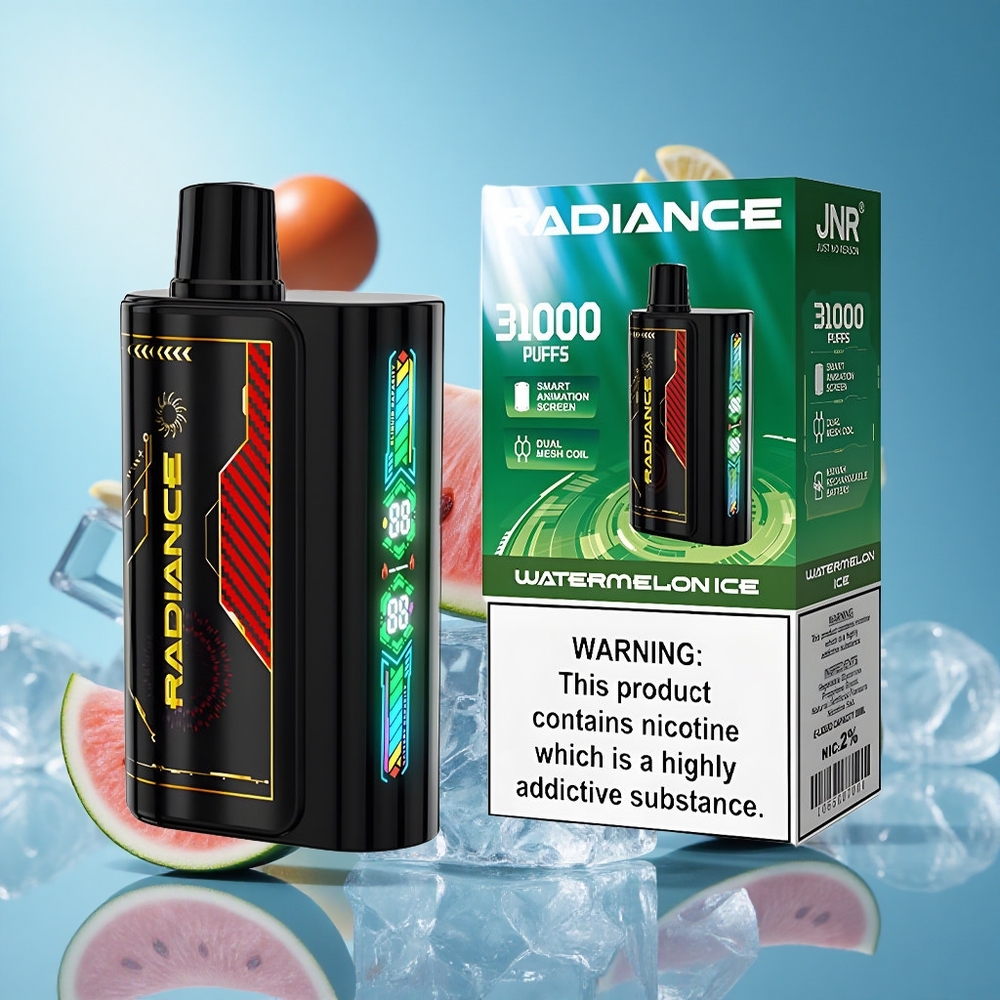 استمتع بتجربة فريدة مع JNR Radiance 31000 Puffs Disposable Vape، الذي يجمع بين الأداء المتطور والتصميم الذكي. يتميز بشاشة رسوم متحركة ذكية تمنحك تفاعلاً مبهراً، بالإضافة إلى ملفين شبكيين مزدوجين لتبخير غني بالنكهات وشحن سريع عبر منفذ Type-C. يعتبر هذا المنتج الاختيار الأمثل لمحبي السجائر الإلكترونية بفضل سعته الكبيرة وكفاءته العالية.