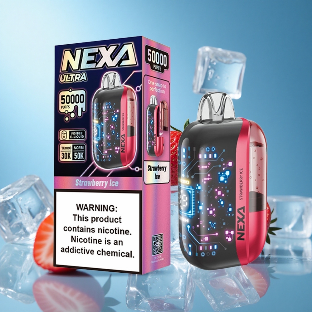 NEXA Ultra 50K بخاخة تبخير مزودة بشاشة منحنية ثلاثية الأبعاد وبنكهة الفراولة آيس
