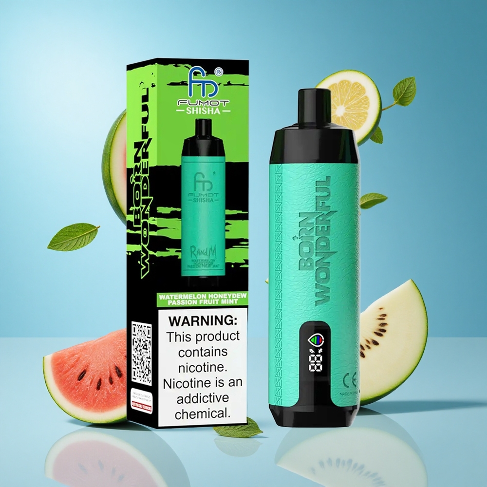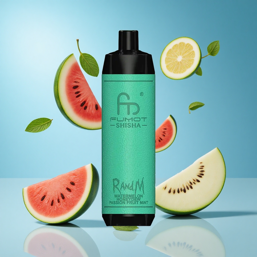 RandM Fumot Shisha 10000 Puffs بطارية 850 مللي أمبير/ساعة نكهة البطيخ والعسل والنعناع
