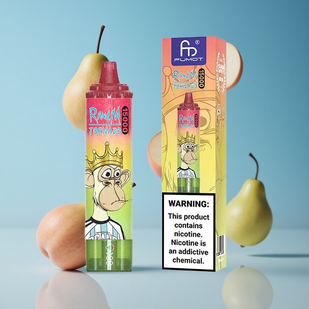 RandM Fumot Tornado 15000 نفخة سيجارة إلكترونية تفاح خوخ إجاص بشاشة LCD وشاحن Type-C