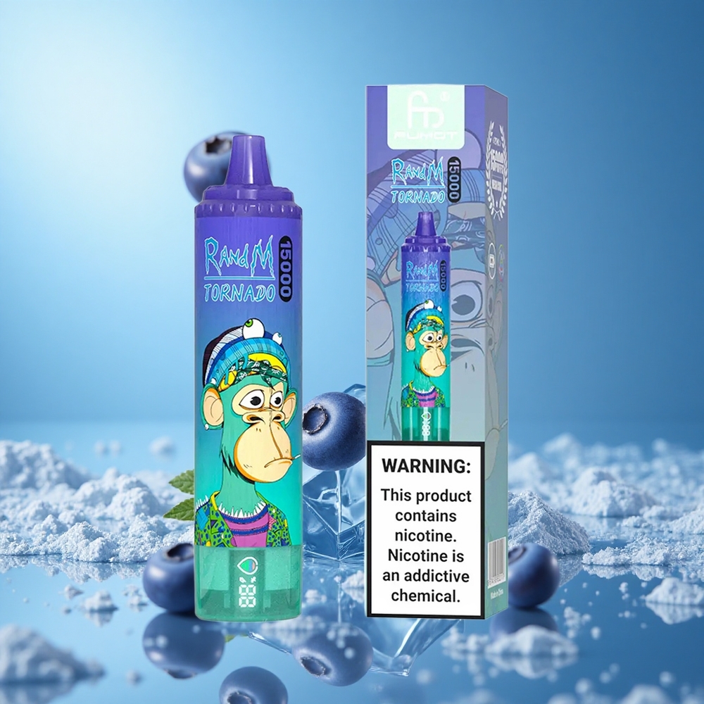 RandM Fumot Tornado 15000 Puffs سعة سائل 25 مل توت أزرق مثلج شاشة LCD