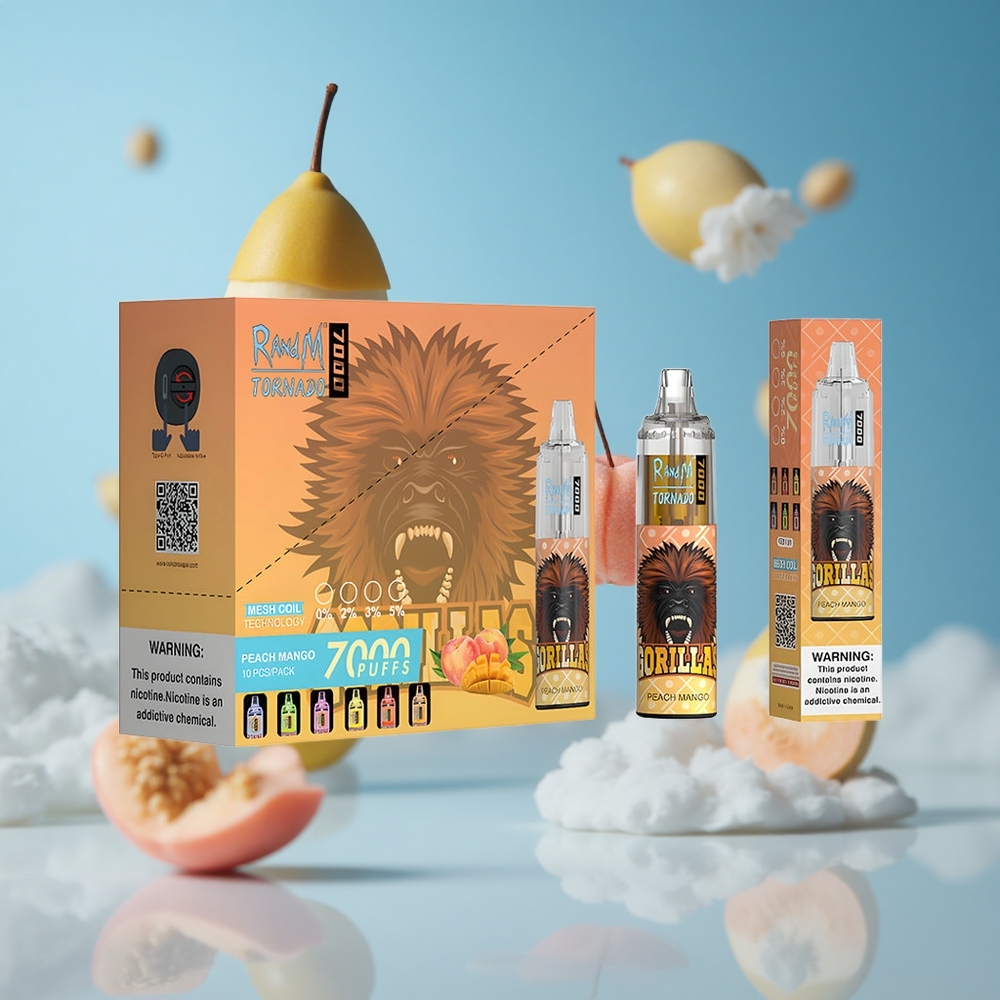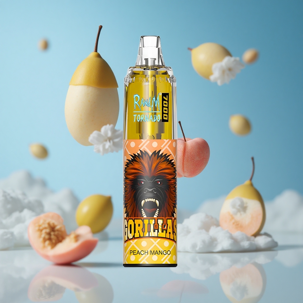 RandM Fumot Tornado 7000 بخاخ فاخر (خوخ مانجو) مع 14 مل سائل إلكتروني وإضاءة RGB