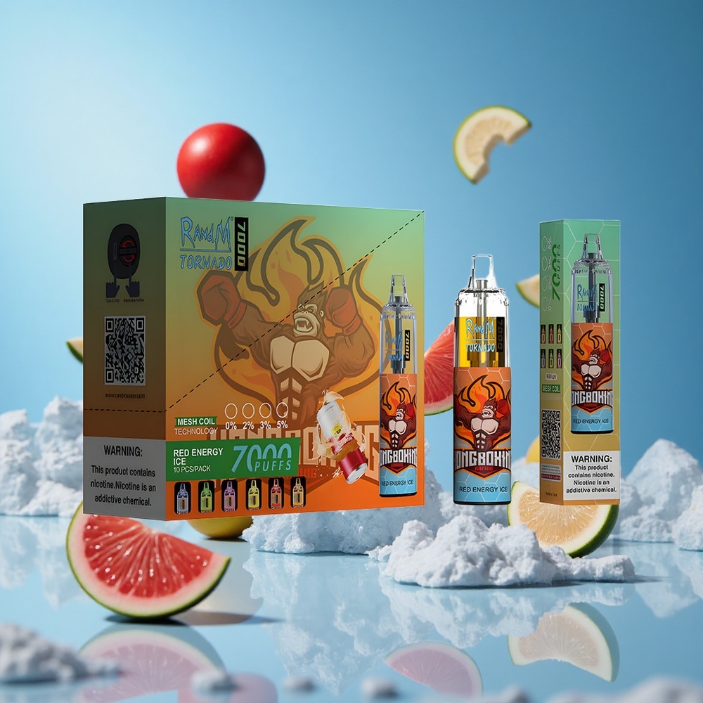 RandM Fumot Tornado 7000 سحابة ناعمة (أحمر طاقة جليد) بطارية 850 مللي أمبير