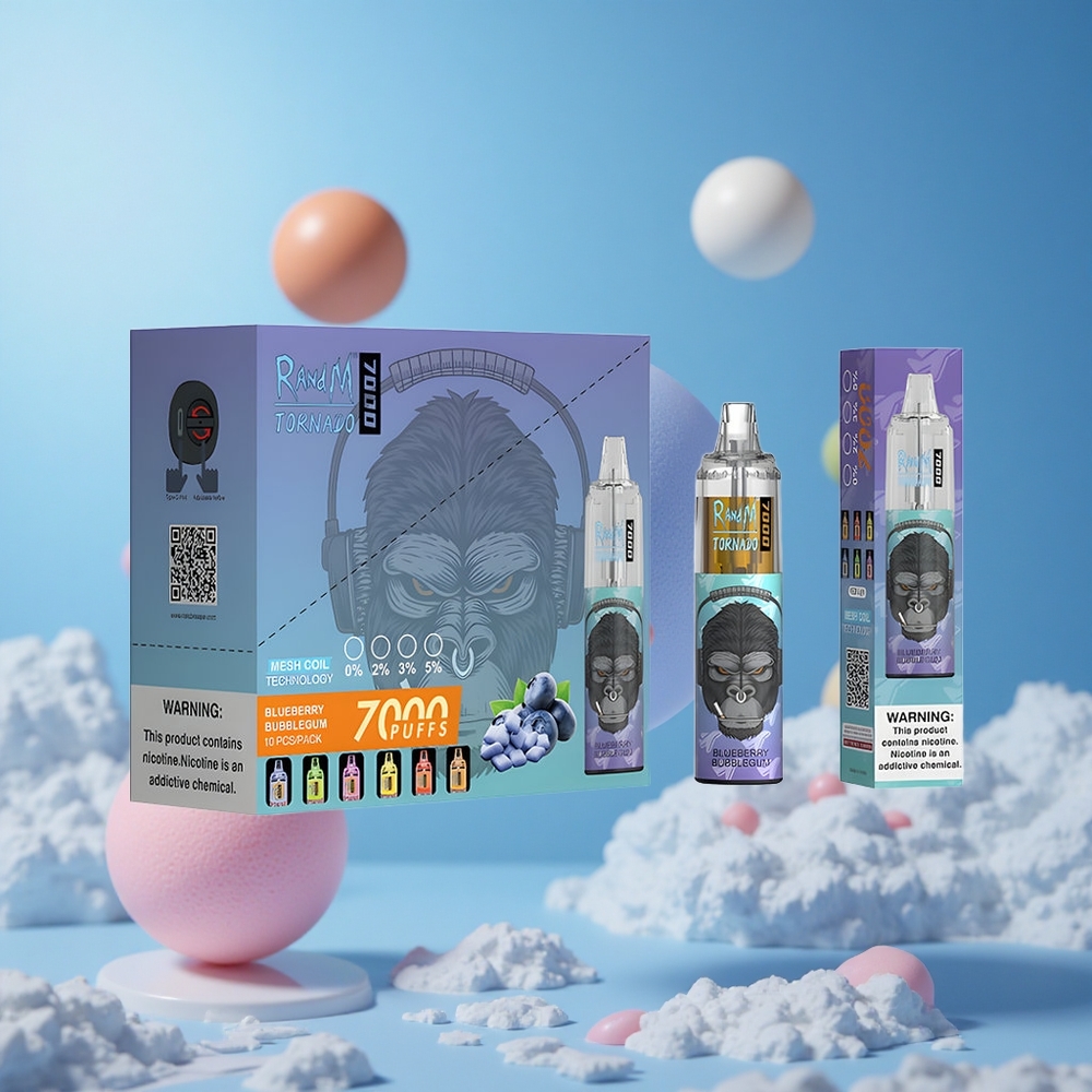 RandM Fumot Tornado 7000 سيجارة إلكترونية (علكة التوت الأزرق) بشريحة شبكية ومنفذ Type-C