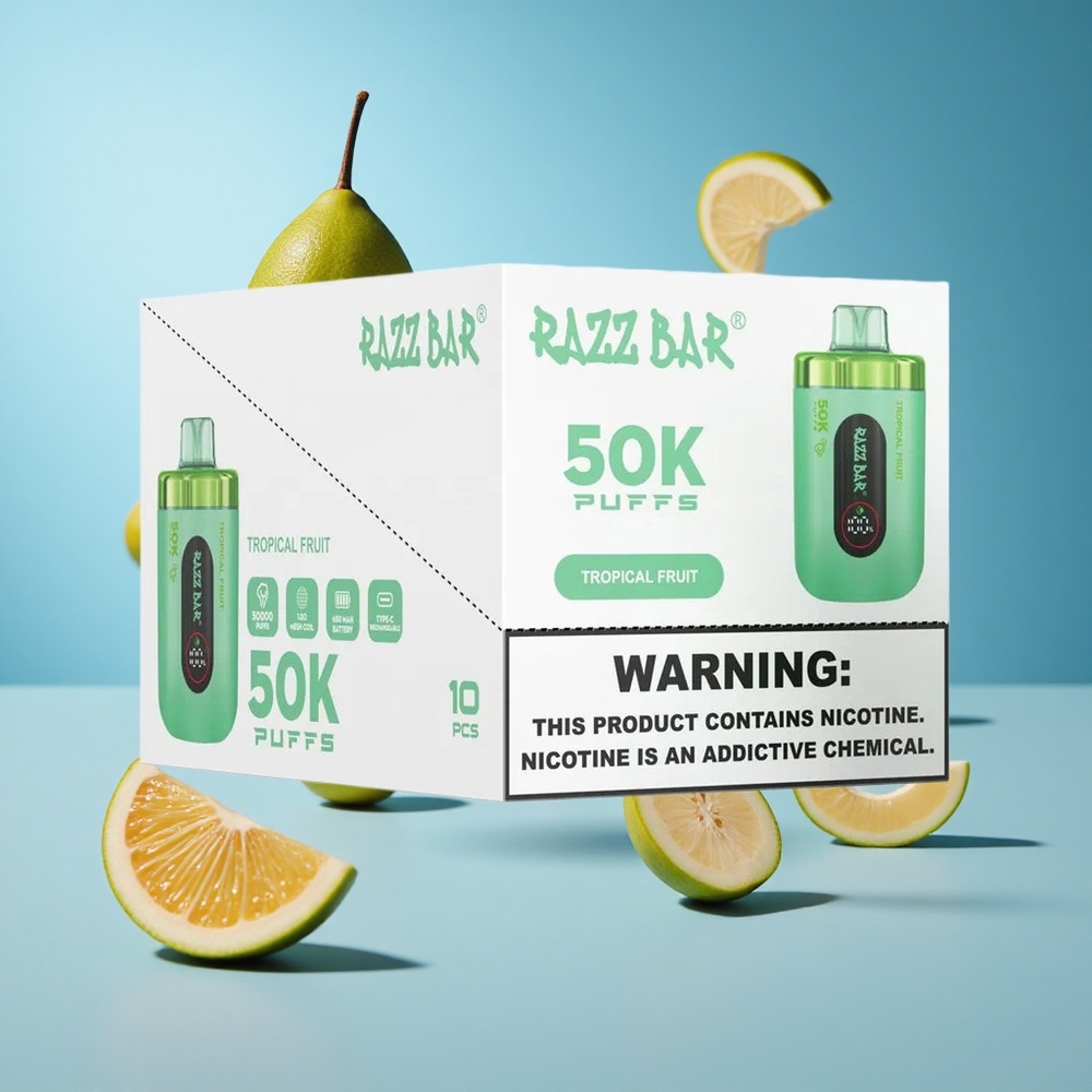 Razz Bar 50K Puffs مبخر استوائي قابل لإعادة الشحن بمنفذ Type-C