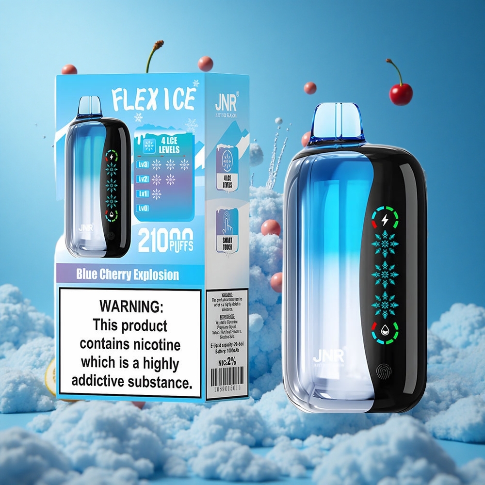 JNR Flex Ice 21000 Puffs تبغ إلكتروني قابل للتعديل بلمسة واحدة انفجار الكرز الأزرق