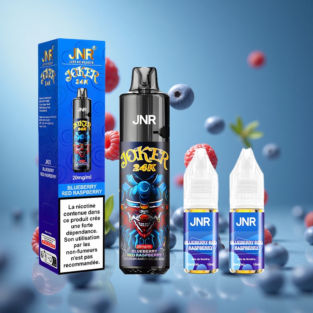 JNR Joker 24K Puffs بخاخ قابل لإعادة التعبئة مع توت أزرق وتوت أحمر و800mAh بطارية