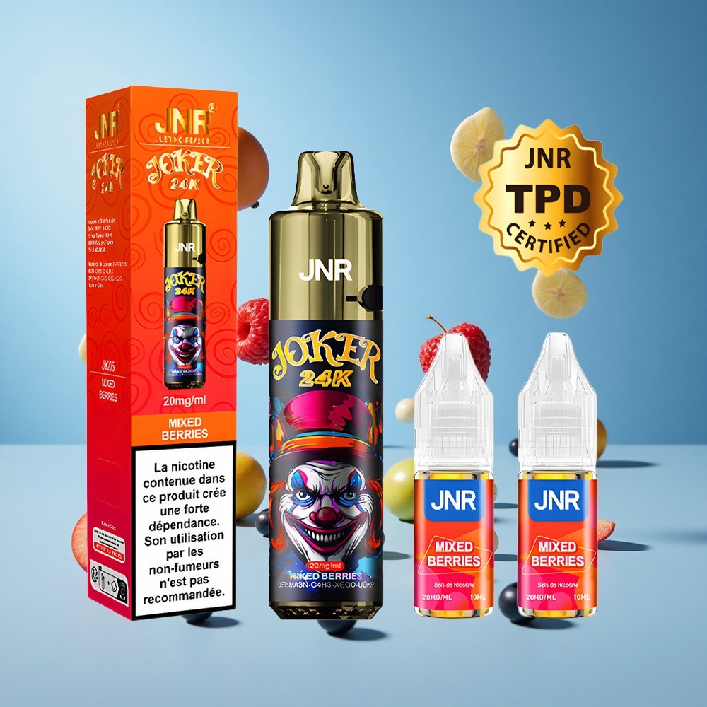 JNR Joker 24K Puffs سيجارة إلكترونية قابلة لإعادة الملء 10 مل بطارية 800 مللي أمبير توت مختلط