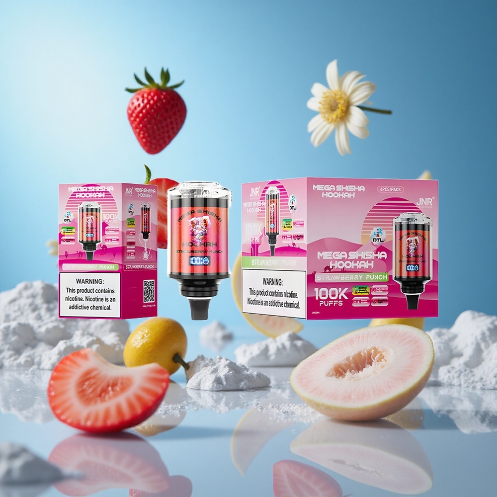 JNR Mega Shisha Hookah 100K مشروب الفراولة فراولة بنش سعة 60 مل شاشة ذكية