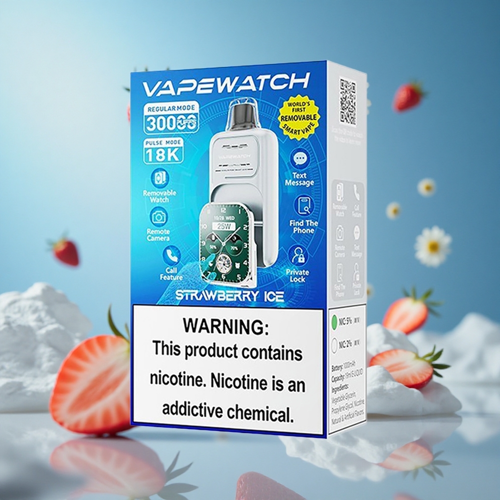 الرئيسية| بيع ساخن| JNR| JNR VapeWatch 30000| JNR Vape Watch 30000 Puffs ستروبيري آيس سعة السائل 19مل ونيكوتين 5%
