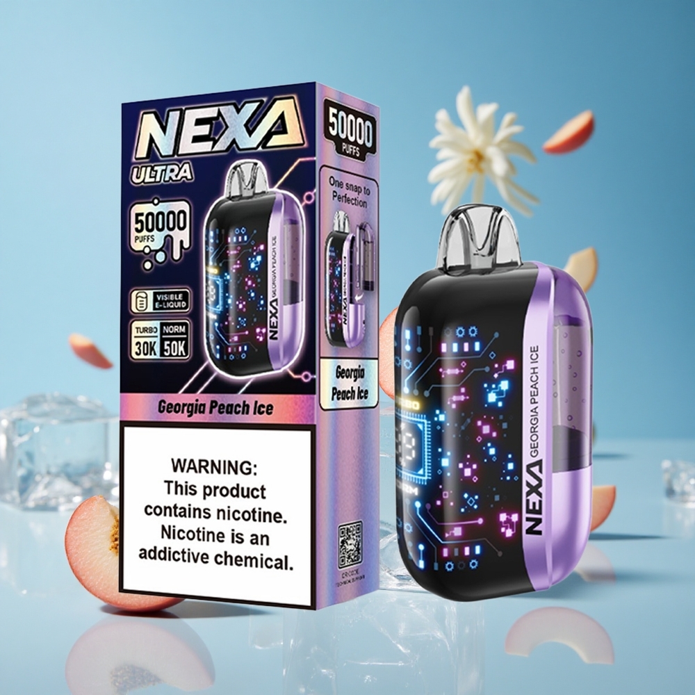 NEXA Ultra 50K بخاخ 20مل سعة مسبقة الشحن شاشة منحنية ثلاثية الأبعاد خوخ جورجيا مثلج