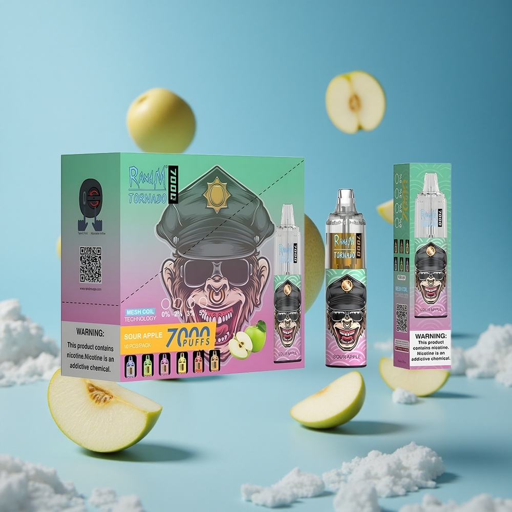 RandM Fumot Tornado 7000 سحابة تفاح حامض مع 14 مل سائل وبطارية 850 ملي أمبير