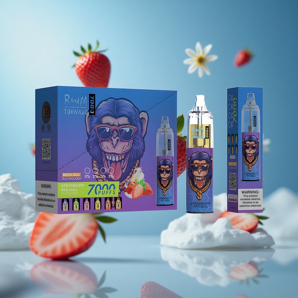 RandM Fumot Tornado 7000 بخاخة فراولة ريد بول 14 مل مع ضوء RGB
