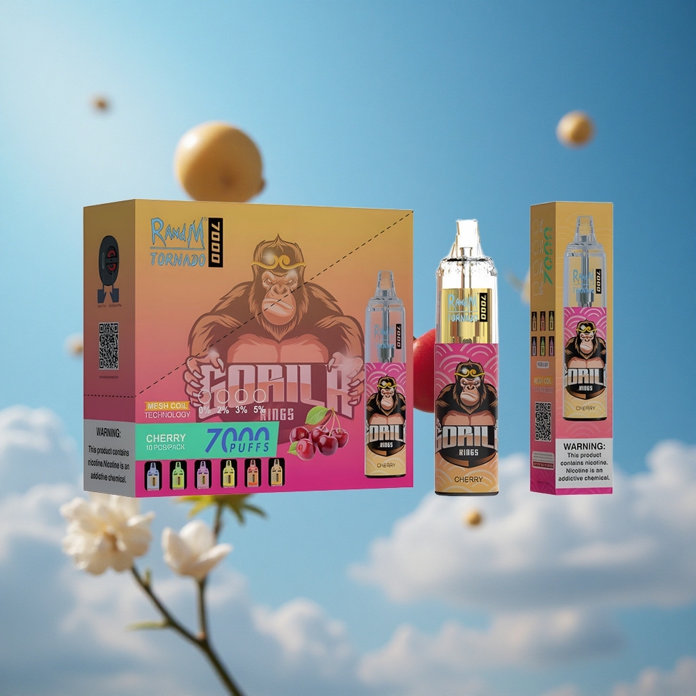RandM Fumot Tornado 7000 بخاخة كرز مع ضوء RGB وشبكة ملف