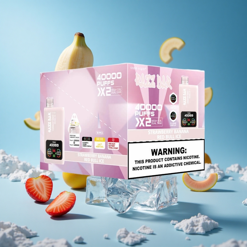 Razz Bar 40000 Puffs شاشة طاقة فراولة موز ريد بول آيس