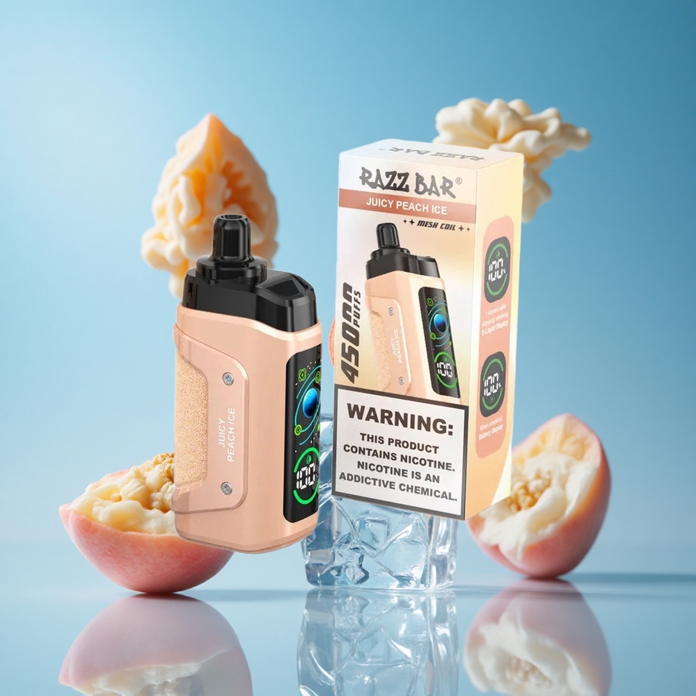 Razz Bar 45000 Puffs سيجارة إلكترونية للاستخدام مرة واحدة خوخ عصيري مثلج ملف شبكي 1.0 أوم